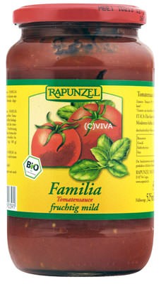 RAPUNZEL Tomatensauce Familia schmeckt fruchtig mild. Sie ist dezent mit frischem Basilikum und Meersalz abgeschmeckt. RAPUNZEL Familia Tomatensauce wird in Italien aus sonnengereiften Tometen und Basilikum aus kontrolliert biologischem Anbau hergestellt. Durch die erntefrische und schonende Verarbeitung bleiben das besonders fruchtige Aroma der vollreifen Früchte und die wertvollen Inhaltsstoffe wie Lycopin (7mg/ 100g) weitestgehend erhalten. RAPUNZEL Tomatensauce Familia ist die ideale Grundlage für mediterrane Saucen.